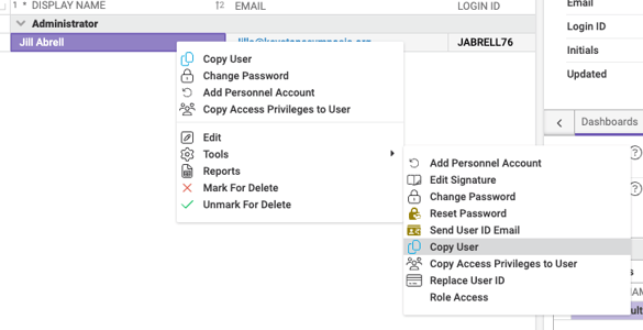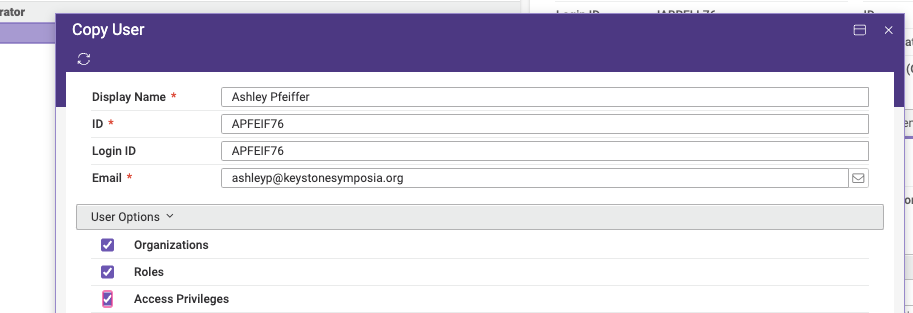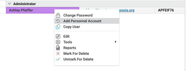 2. Find a user with similar role/permissions that you would like to base the new user off of