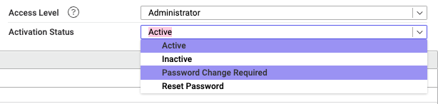2. Click edit user and navigate to the Access and security tab and update the activation status to 'Password change required' this will force the user to set a password on their first login.